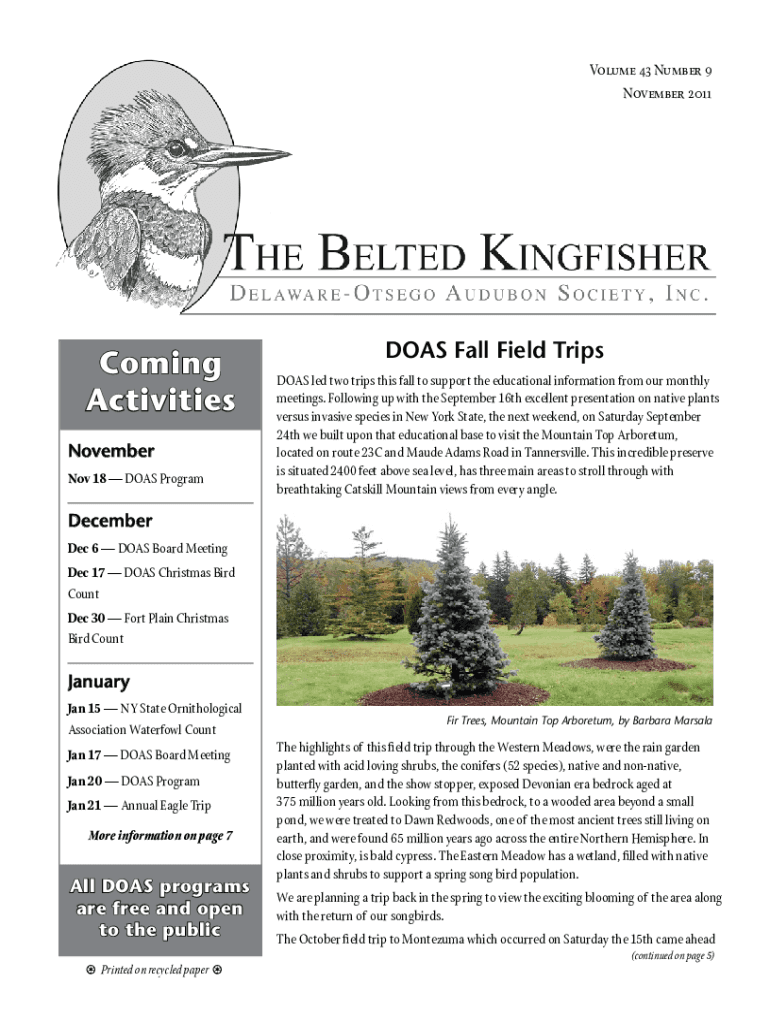 Volume 43 Number 9 November 2011Coming Activities November Nov 18 DOES Programs Fall Field Trips DOA Sled two trips this fall to support the educational information from our monthly meetings. Following