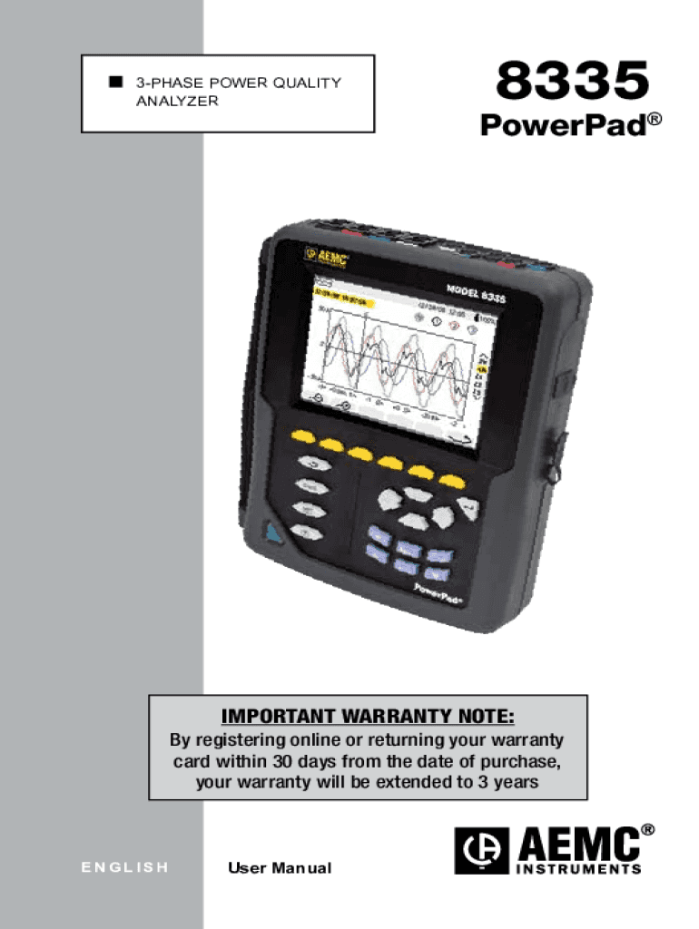 3PHASE POWER QUALITYANALYZER8335PowerPadIMPORTANT WARRANTY NOTE: By registering online or returning your warranty card within 30 days from the date of purchase, your warranty will be extended to 3