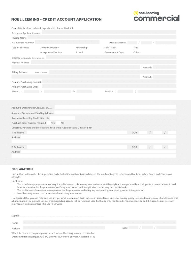NOEL SEEMING CREDIT ACCOUNT APPLICATION