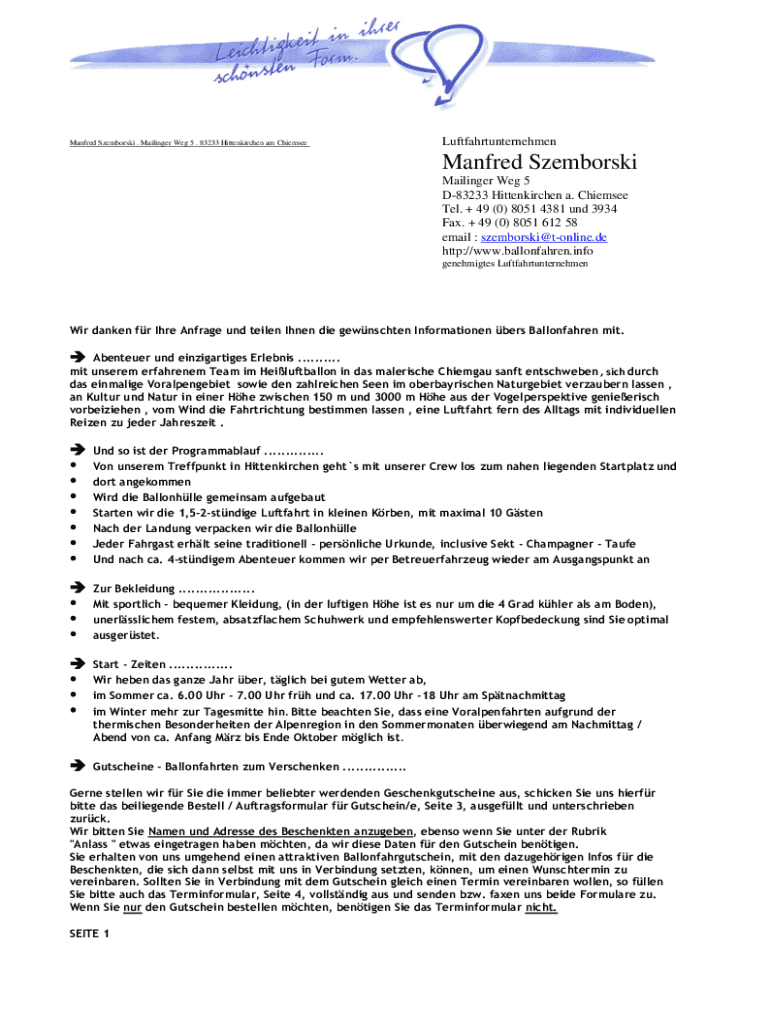 So füllen Sie ballonfahrten chiemsee home aus