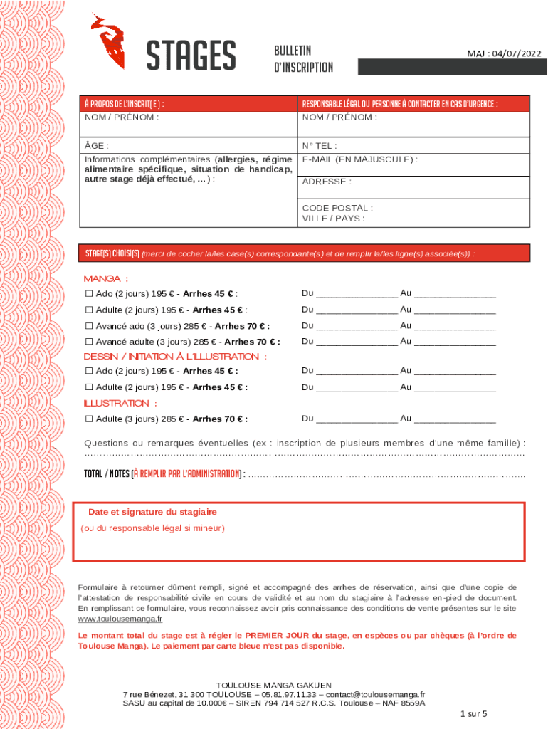 Propos de l'inscrit e doit être rempli en fournissant toutes les informations demandées de manière claire et précise.