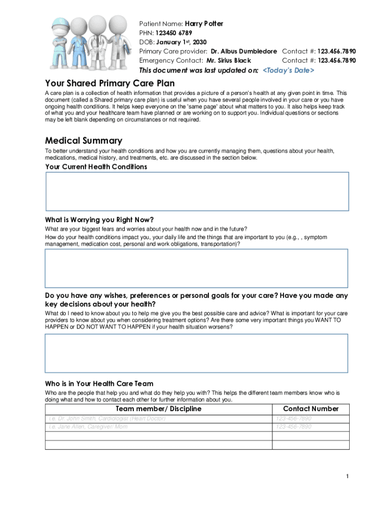 Patient Name: Harry Potter PhD: 123450 6789 DOB: January 1st, 2030 Primary Care provider: Dr. Albus Dumbledore Contact #: 123.456.7890 Emergency Contact: Mr. Sirius Black Contact #: 123.456.7890This