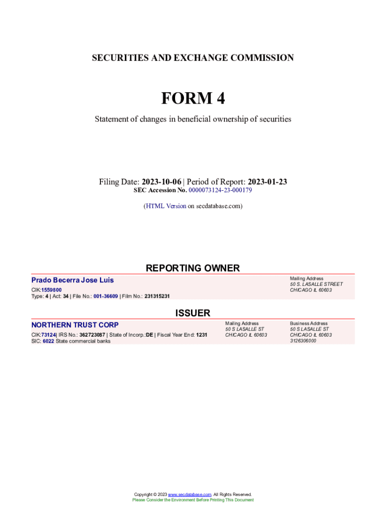 SECURITIES AND EXCHANGE COMMISSIONER 4 Statement of changes in beneficial ownership of securitiesFiling Date: 20231006 | Period of Report: 20230123 SEC Accession No. 000007312423000179 (HTML Version