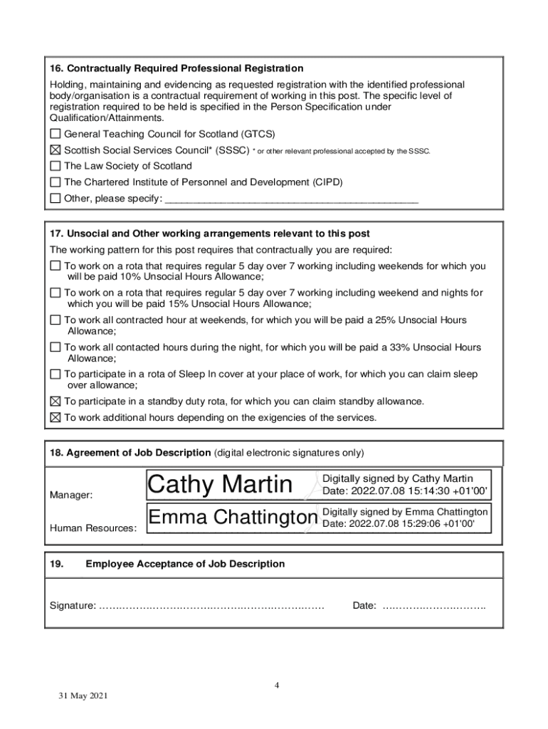 1. ServiceOrkney Health and Care2. Service Area/FunctionSocial Work Adult Social Work3. Job TitleSocial Worker4. LocationCouncil Offices5. Reporting Totem Manager6. GradeG107. Job Evaluation ReferenceA14828.
