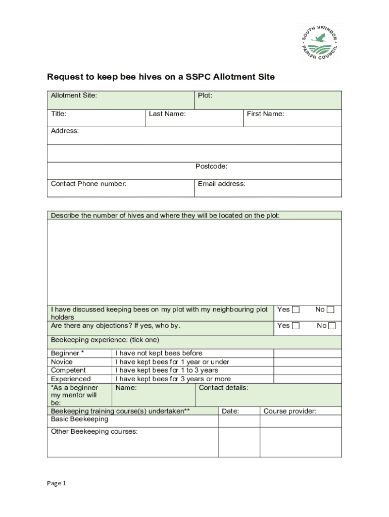 Get the free 2. Request to keep bee hives on a SSPC Allotment Site