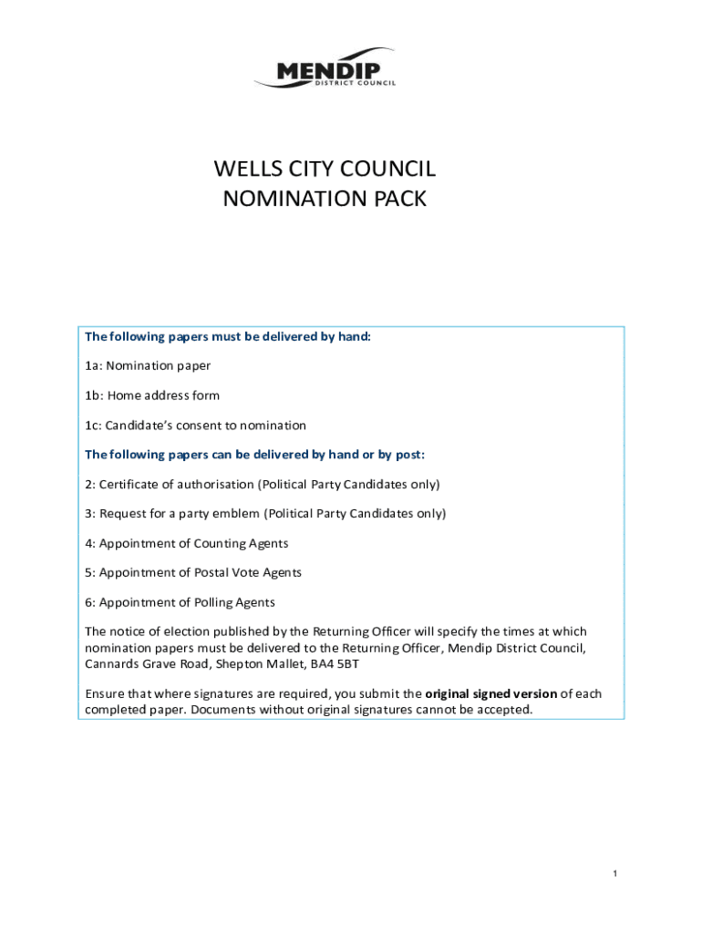 WELLS CITY COUNCIL NOMINATION Package following papers must be delivered by hand: 1a: Nomination paper 1b: Home address form 1c: Candidates consent to nomination The following papers can be delivered