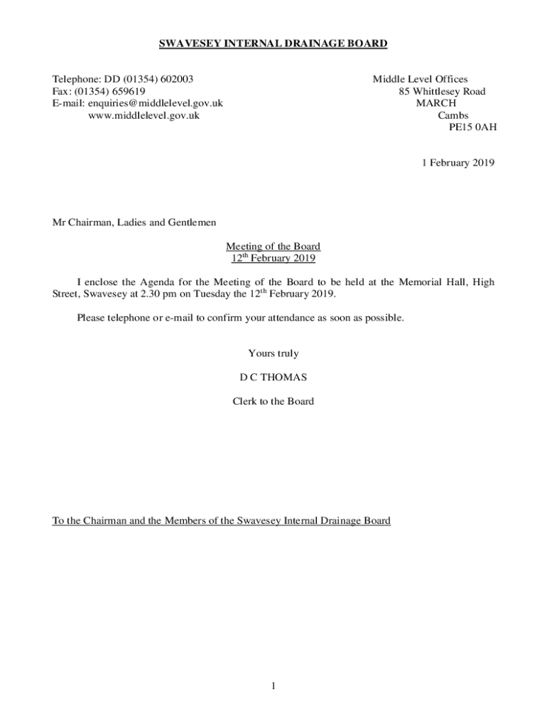 STAVELEY INTERNAL DRAINAGE BOARDTelephone: DD (01354) 602003 Fax: (01354) 659619 Email: enquiries@middlelevel.gov.uk www.middlelevel.gov.ukMiddle Level Offices 85 Whittles Road MARCH Camps PE15 0AH1