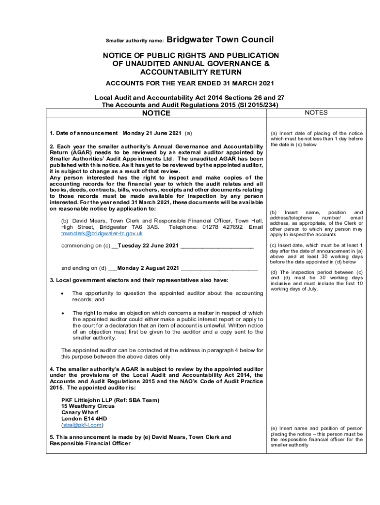 Smaller authority name:Bridgewater Town CouncilNOTICE OF PUBLIC RIGHTS AND PUBLICATION
