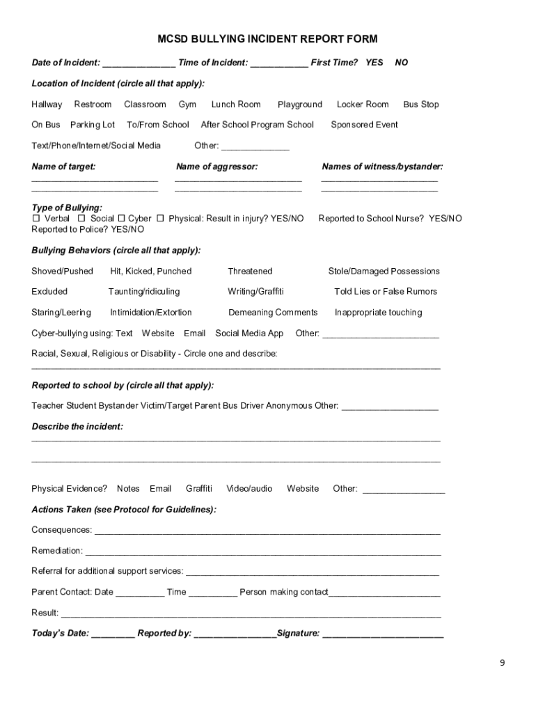 Get the free Bullying/Cyberbullying - Nevada Department of Education