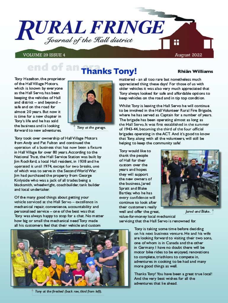 VOLUME 29 ISSUE 4August 2022end of a Thanks era Tony! Tony Hazleton, the proprietor of the Hall Village Motors, which is known by everyone as the Hall Servo, has been keeping the vehicles of Hall