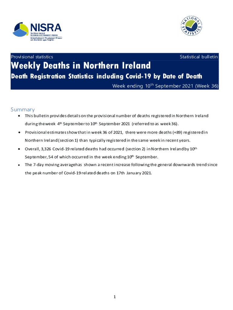 Get the free Weekly Death Statistics in Northern Ireland 2021