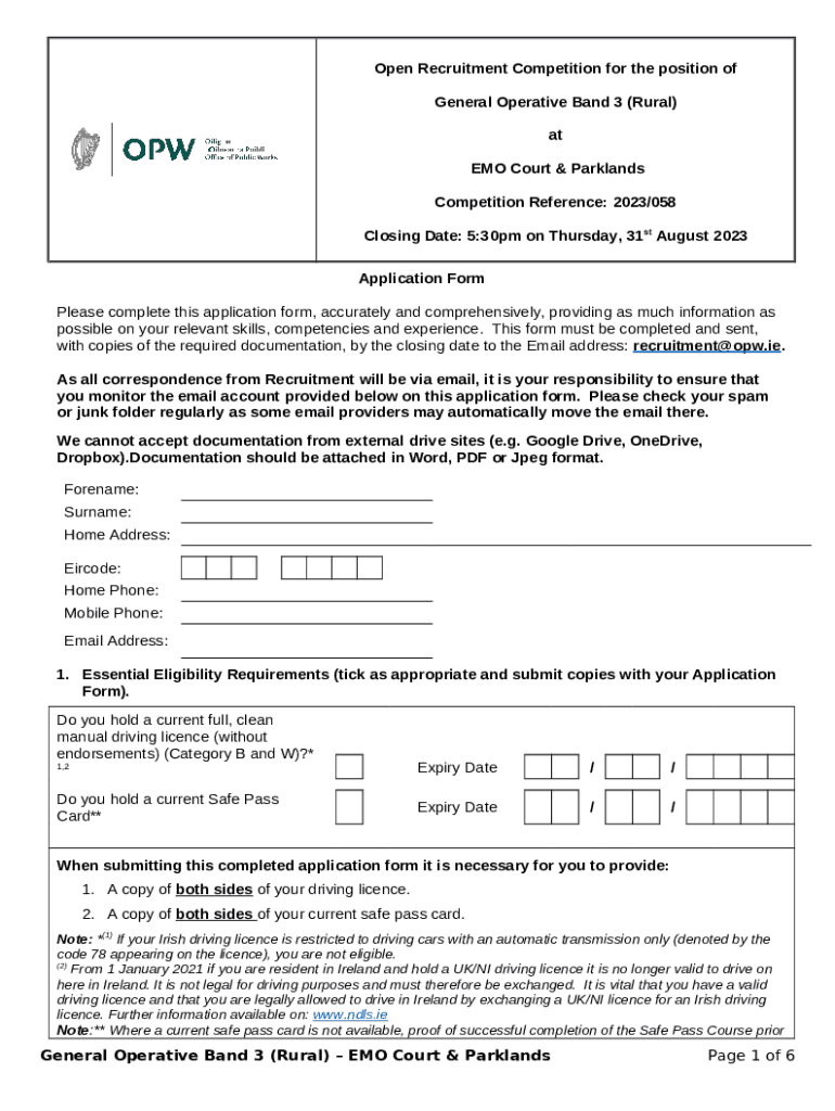 Instructions for the Job Opportunities - Employee Services Agency form