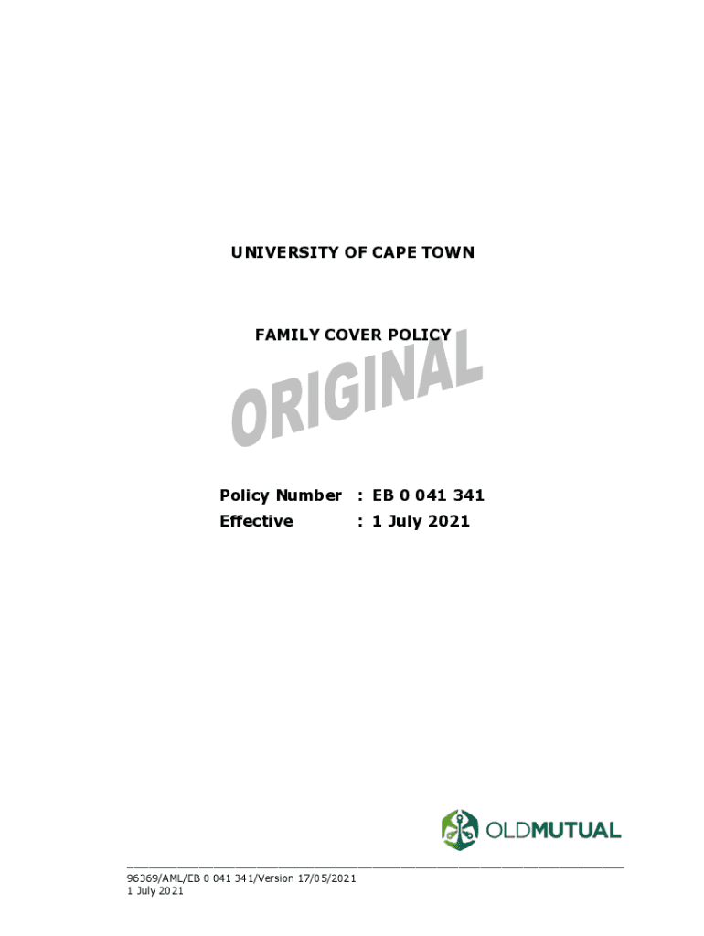 UNIVERSITY OF CAPE TOWNFAMILY COVER POLICYPolicy Number : EX 0 041 341
