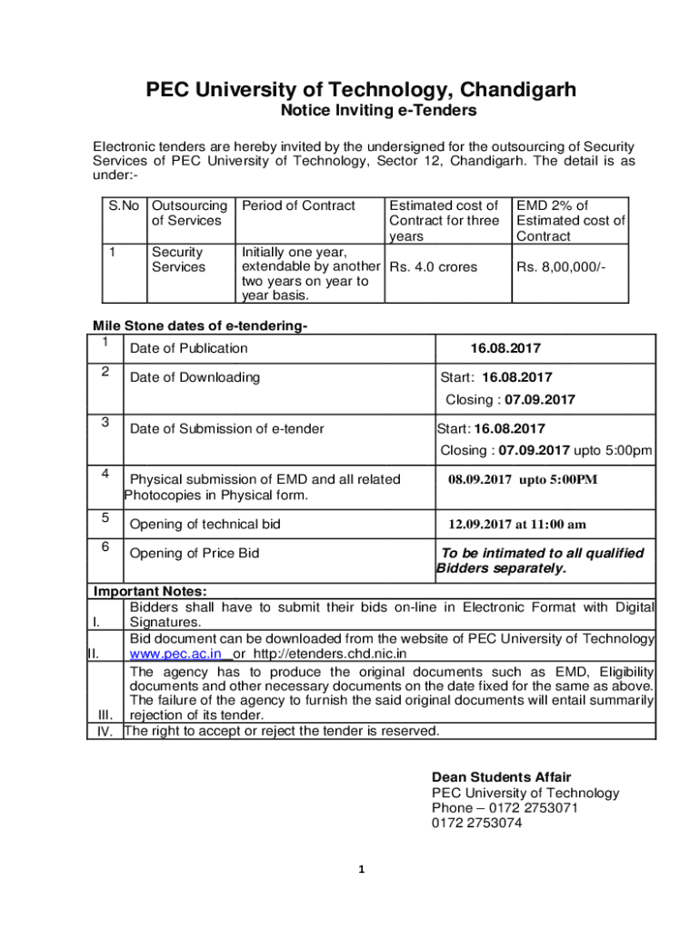 Get the free Notice Inviting E-Tenders for Security Service PEC ... - Chd.nic.in - pec ac