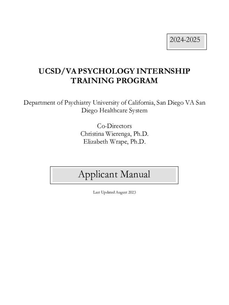 20242025UCSD/VA PSYCHOLOGY INTERNSHIP TRAINING PROGRAM Department of Psychiatry University of California, San Diego VA San Diego Healthcare System Co-directors Christina Wearing, Ph.D. Elizabeth Grape,