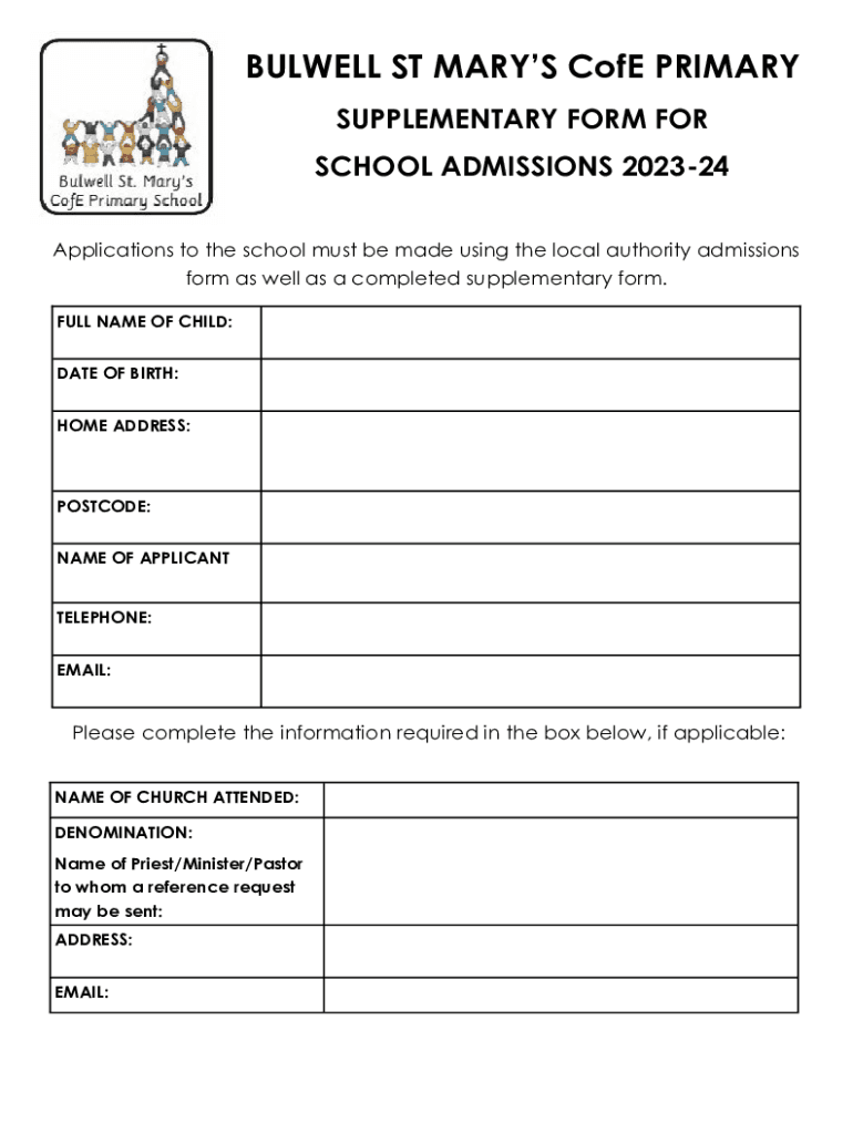 BURWELL ST MARY Come PRIMARY SUPPLEMENTARY FORM FOR SCHOOL ADMISSIONS 202324 Applications to the school must be made using the local authority admissions form as well as a completed supplementary