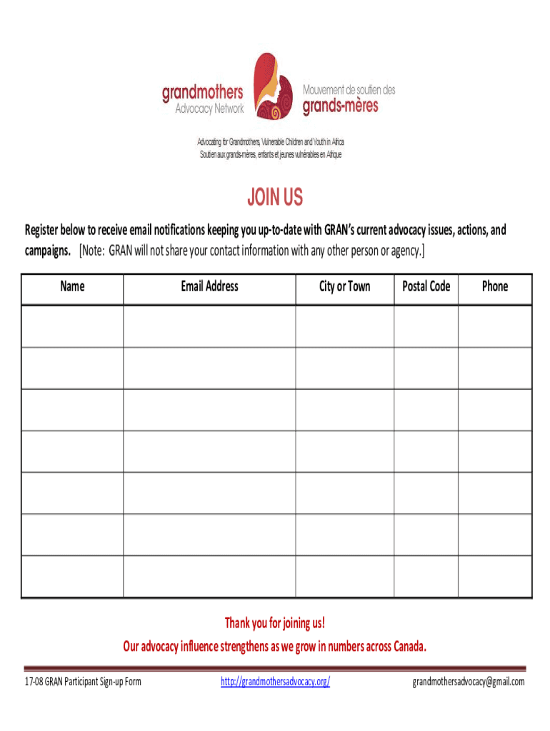 JOIN US Register below to receive email notifications keeping you update with Grans current advocacy issues, actions, and campaigns. [Note: GRAN will not share your contact information with any other