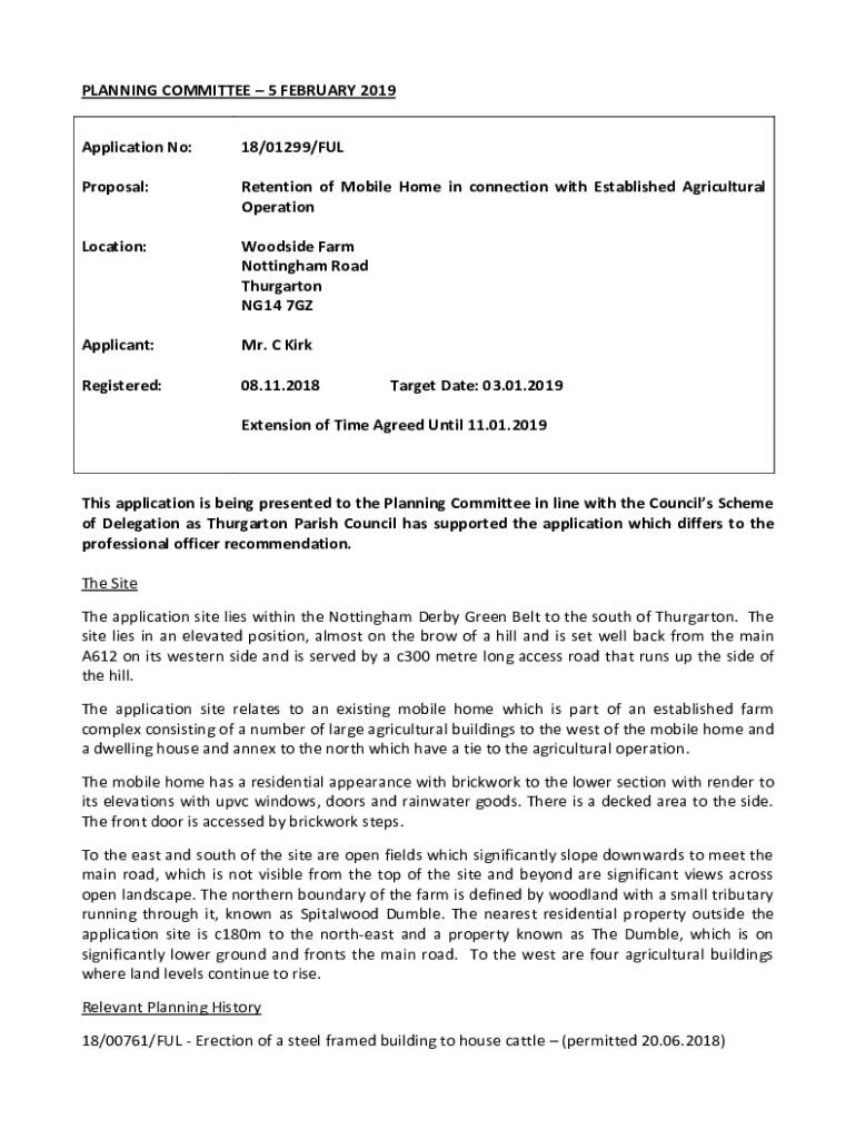 PLANNING COMMITTEE 5 FEBRUARY 2019Application No:18/01299/Proposal:Retention of Mobile Home in connection with Established Agricultural