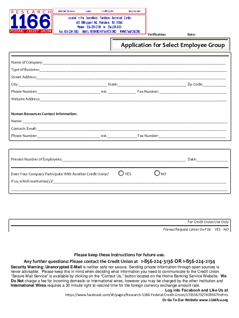 Verification:Date:Application for Select Employee Group