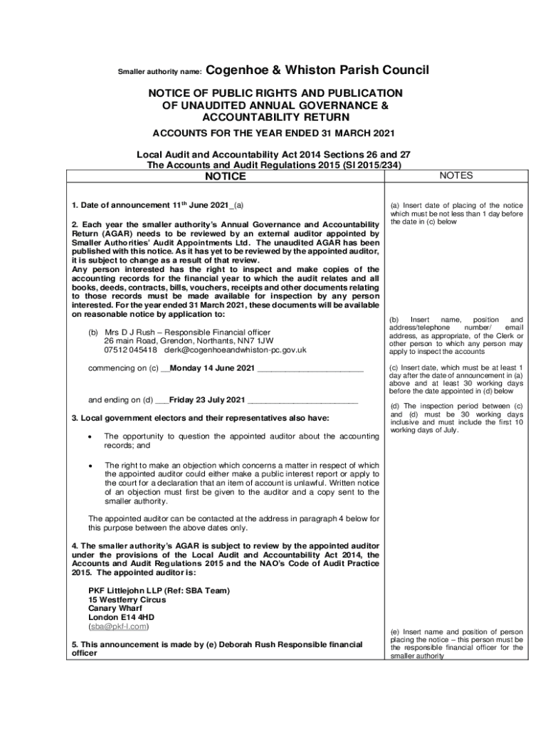 Smaller authority name:Cognate & Whist on Parish CouncilNOTICE OF PUBLIC RIGHTS AND PUBLICATION