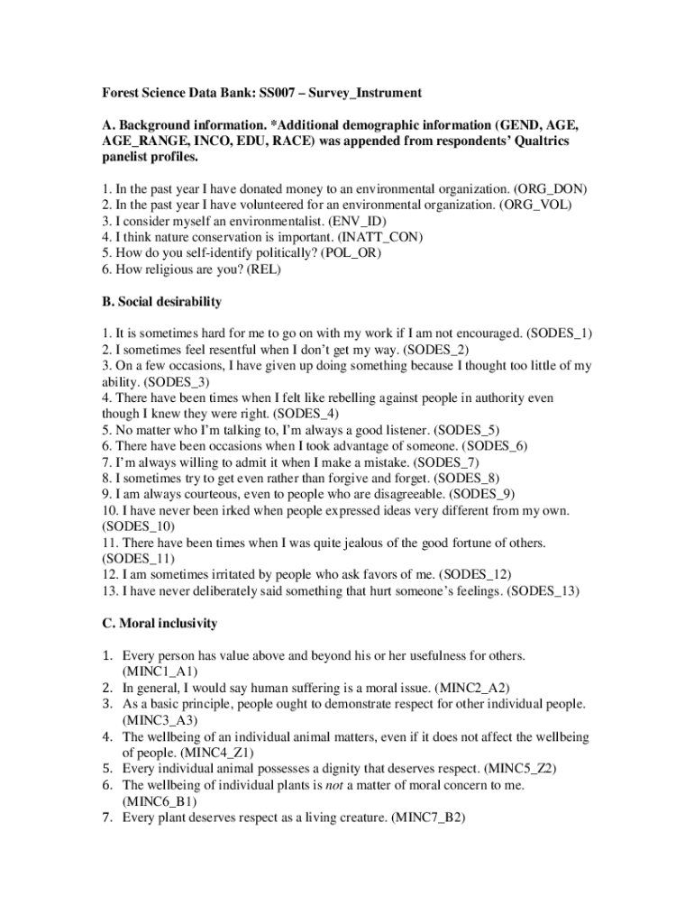 Forest Science Data Bank: SS007 Survey_Instrument A. Background information. *Additional demographic information (END, AGE, AGE_RANGE, INTO, EDU, RACE) was appended from respondents Qualtrics panelist