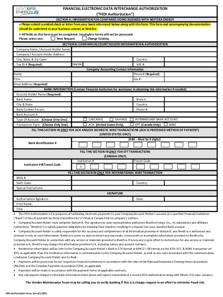 FINANCIALELECTRONICDATAINTERCHANGEAUTHORIZATION