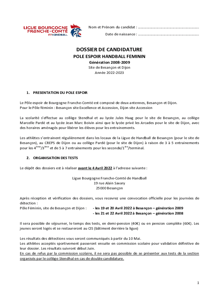 No met Prom Du candidate : ............................................................ Date de Renaissance : ............................................................DOSSIER DE CANDIDATURE POLE