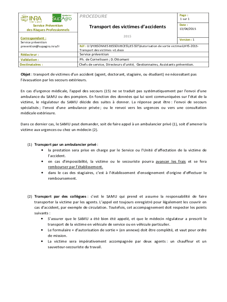 Destinations :Transport DES victims daccidentsDate