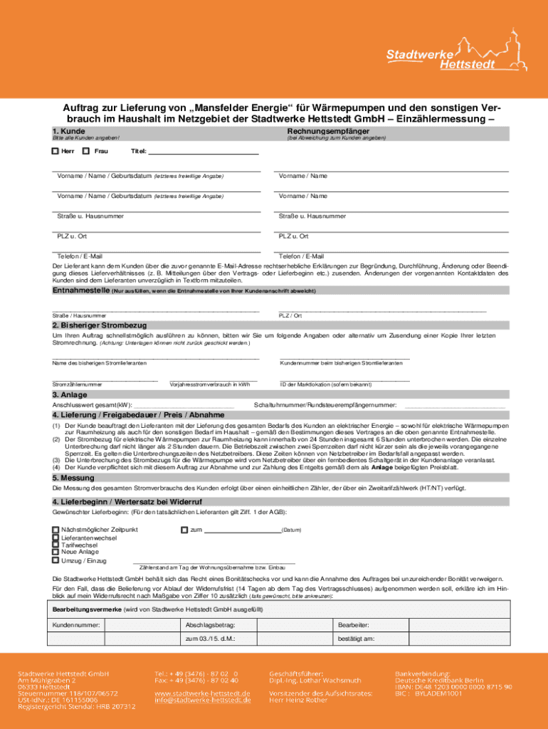 Holen Sie sich kostenlos Auftrag zur Lieferung von Mansfelder Energie fr Wrmepumpen und den sonst...