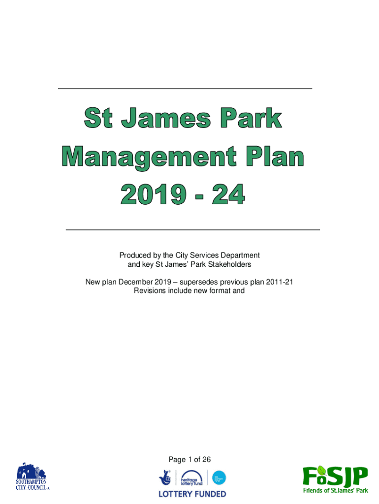 Produced by the City Services Department and key St James Park Stakeholders New plan December 2019 supersedes previous plan 201121 Revisions include new format and Page 1 of 26Contents 1. Vision ..........................................................................................................................................