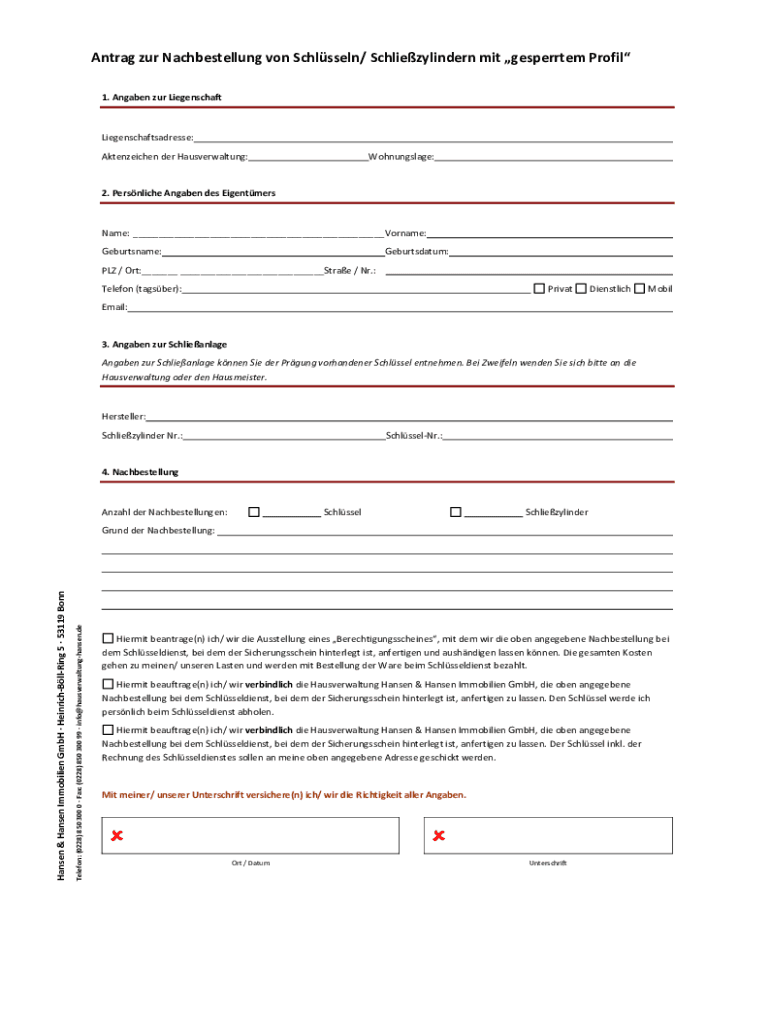 Ant rag our Nachbestellung on Schussed/ Schliezylindern MIT desperate Profit