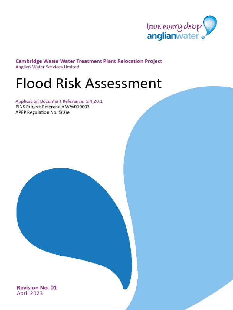 Cambridge Waste Water Treatment Plant Relocation Project Anglican Water Services LimitedFlood Risk Assessment Application Document Reference: 5.4.20.1 PINS Project Reference: WW010003 PFP Regulation