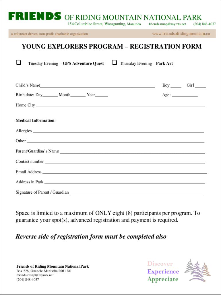 FRIENDS RIDING MOUNTAIN NATIONAL PARK 154 Columbine Street, Salaaming, Manitobafriends.rmnp@mymts.net(204) 8484037www.friendsofridingmountain.CAA volunteer driven, nonprofit charitable organizationYOUNGNATURALIST