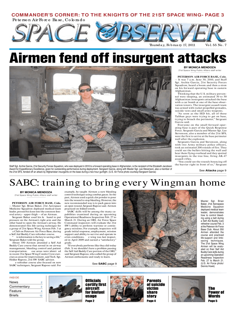 Peterson Air Force Base, Colorado Thursday, February 17, 2011Vol. 55 No. 7Airmen fend off insurgent attacks