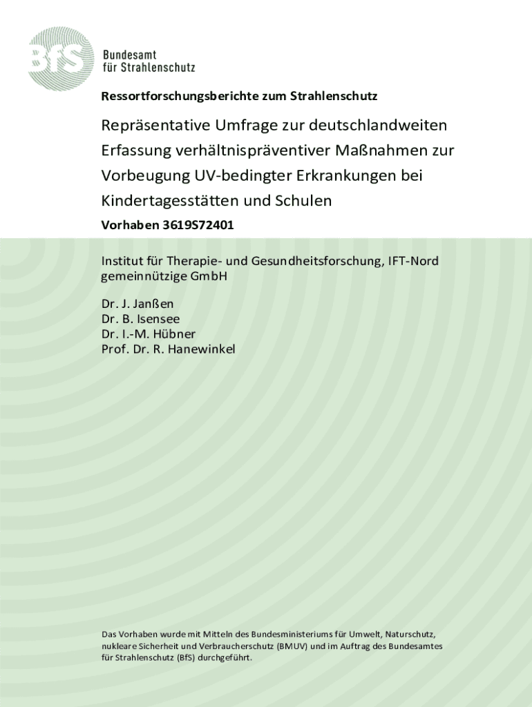 Ressortforschungsberichte sum StrahlenschutzReprsentative Umbrage our deutschlandweiten