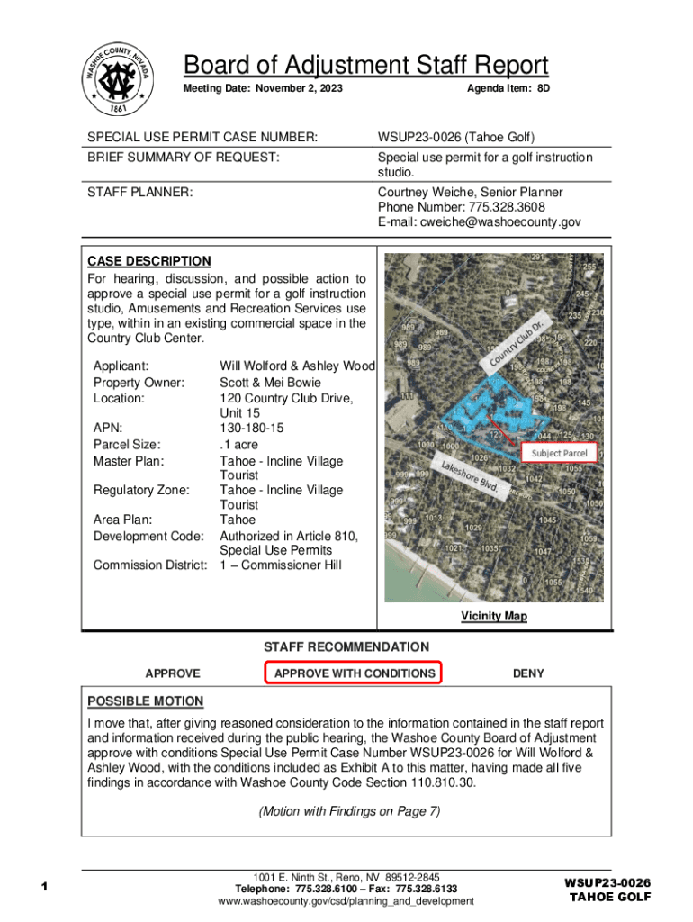 Board of Adjustment Staff Report Meeting Date: November 2, 2023Agenda Item: 8DSPECIAL USE PERMIT CASE NUMBER:WSUP230026 (Tahoe Golf)BRIEF SUMMARY OF REQUEST:Special use permit for a golf instruction
