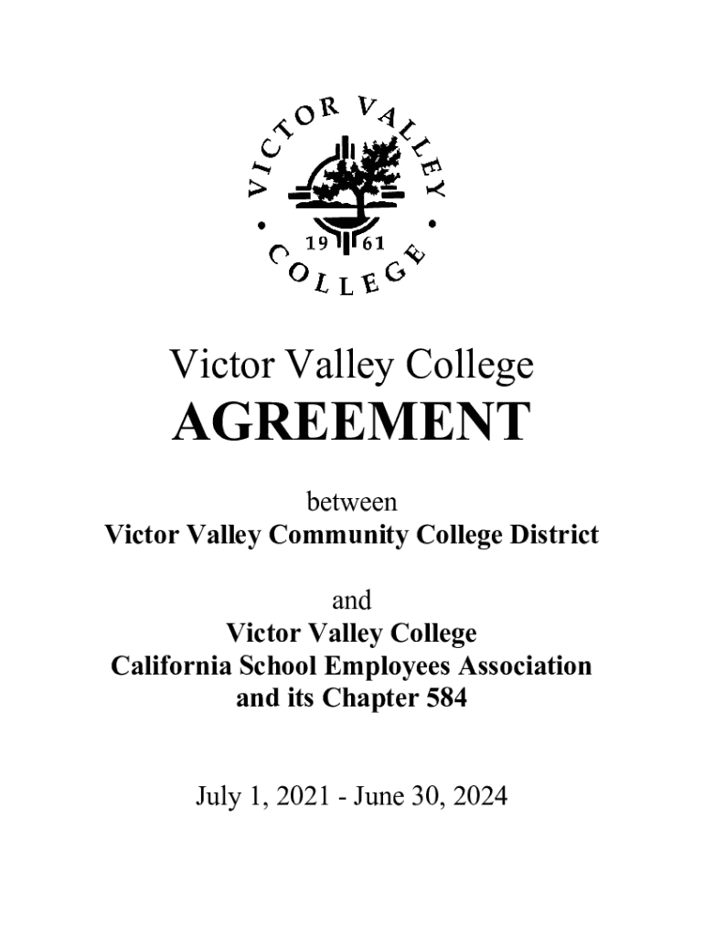 Victor Valley CollegeAGREEMENT between Victor Valley Community College District and Victor Valley College California School Employees Association and its Chapter 584 July 1, 2021, June 30, 2024TABLE