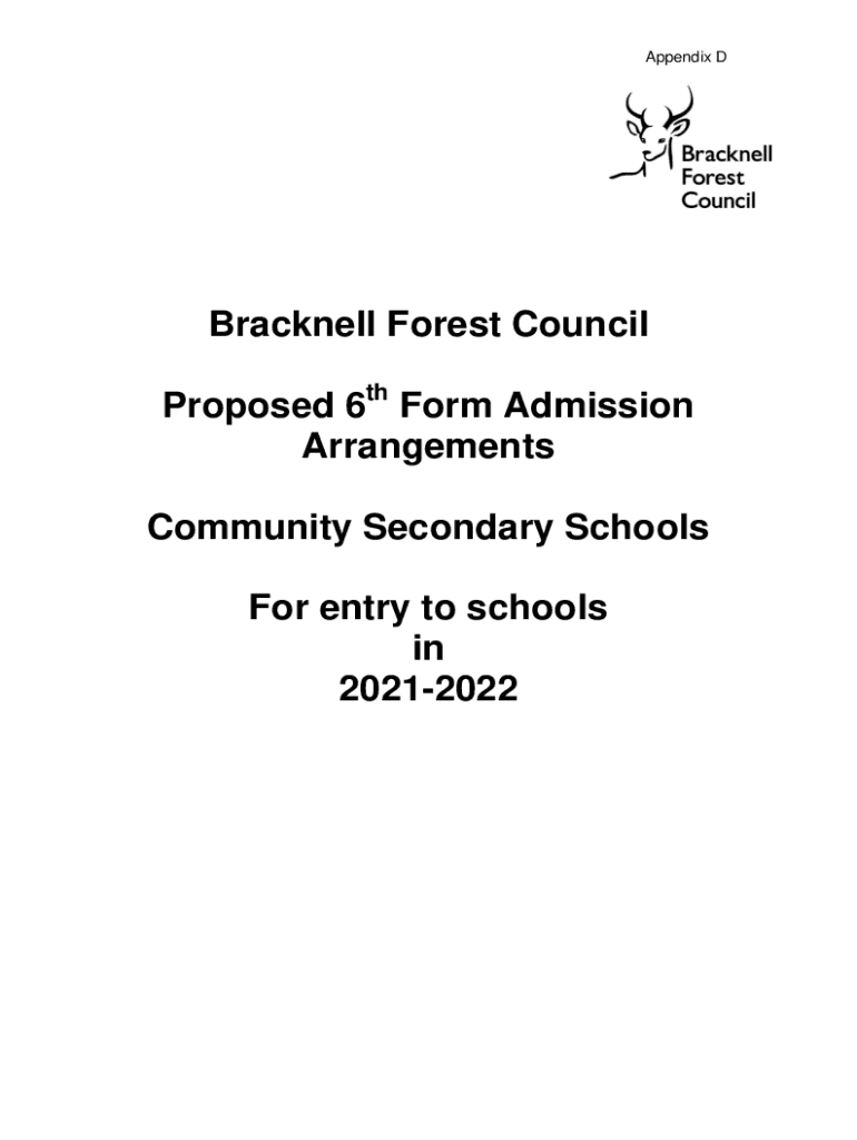 Appendix Bracknell Forest Council Proposed 6th Form Admission Arrangements Community Secondary Schools For entry to schools in 20212022SIXTH FORM ADMISSIONS 2021/2022 Entitlement to sixth form educational