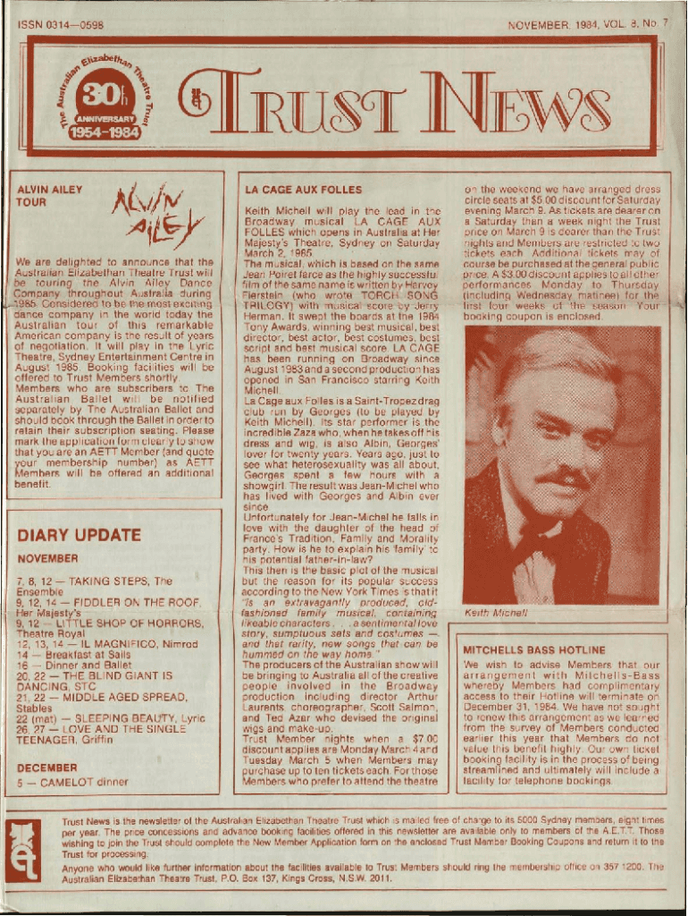 NOVEMBER 1984, VOL 8, No. 7ISSN 03140598ALVIN BAILEY Course are delighted to announce that the Australian Elizabethan Theater Trust will be touring the Alvin Bailey Dance Company throughout Australia