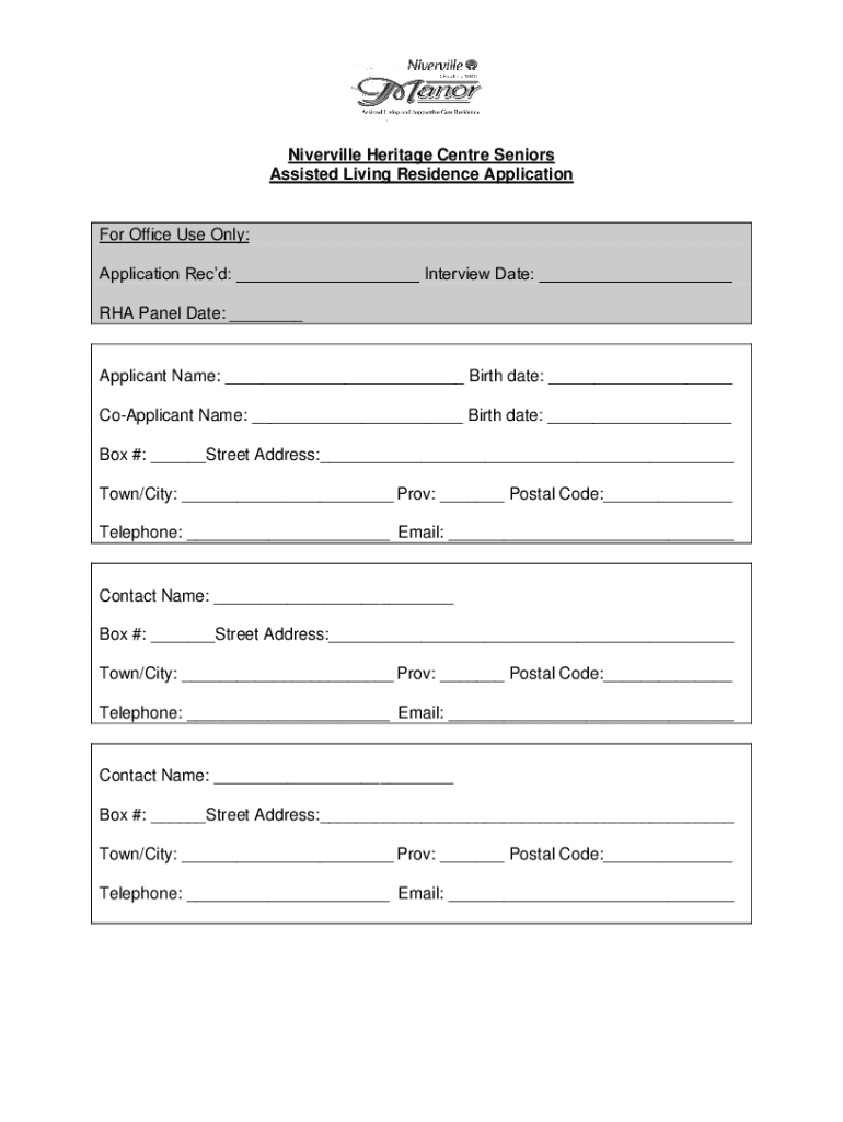 Fill out your niverville heritage centre seniors online with pdfFiller!