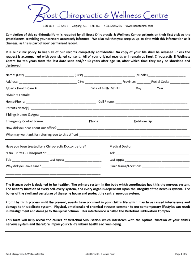120, 817 19 St NE Calgary, ABT2E 4×5403.520.5265www.brostchiro.completion of this confidential form is required by all Boost Chiropractic & Wellness Center patients on their first visit so the practitioners