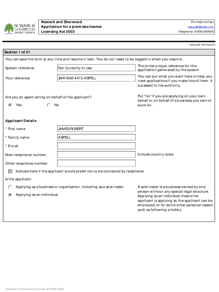 Get the free Newark and Sherwood Application for a premises licence ...
