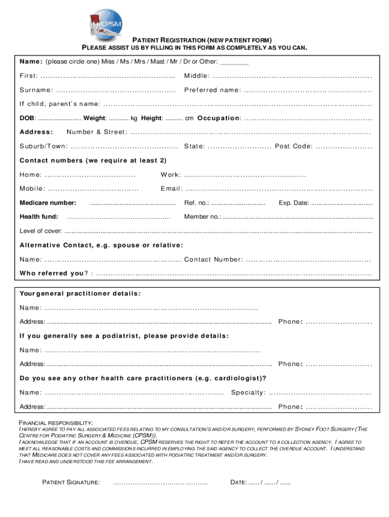PATIENT REGISTRATION (NEW PATIENT FORM)