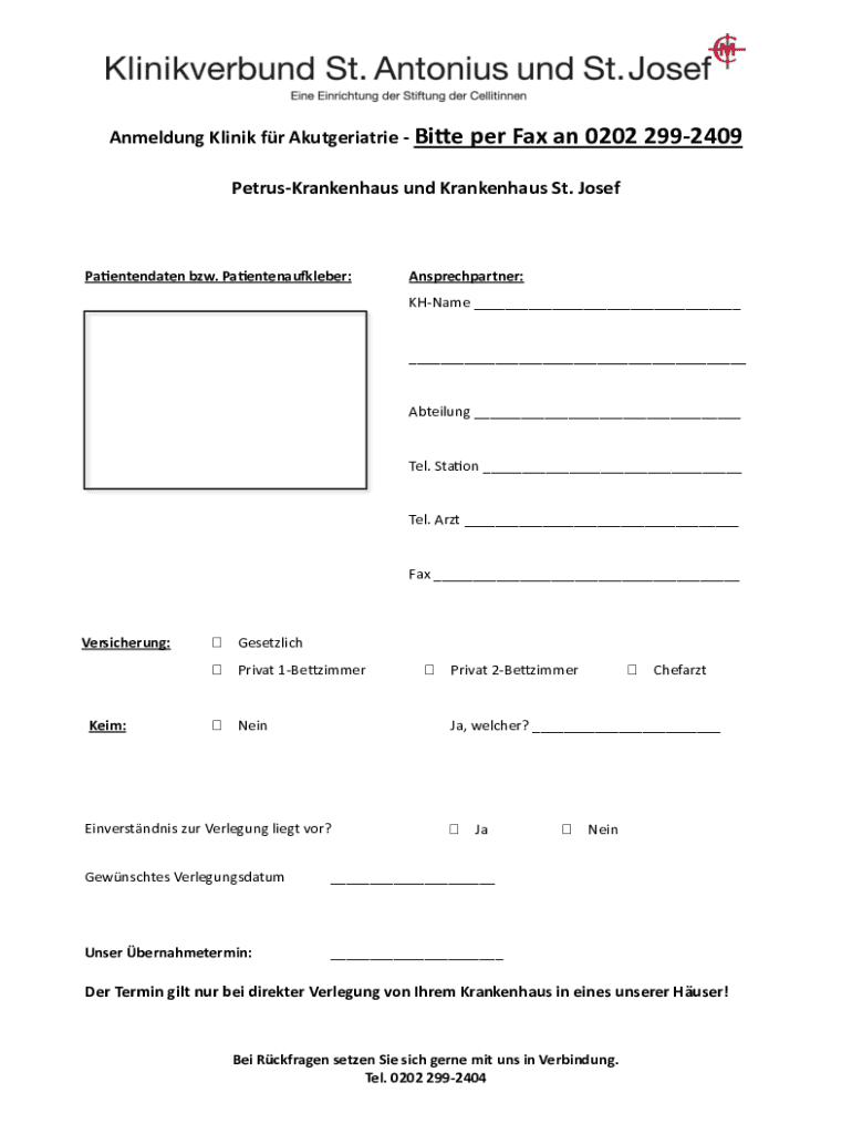 Holen Sie sich kostenlos Bitte per Fax an 0202 299-2409 Petrus-Krankenhaus und ...
