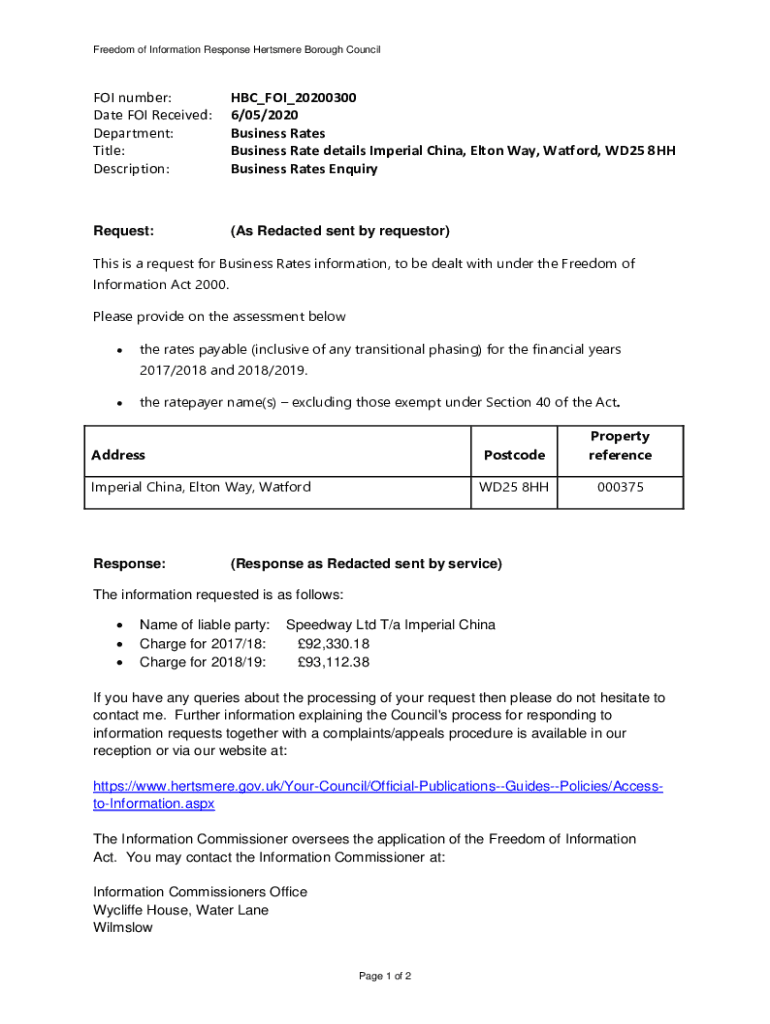 Get the free Business Rates - a Freedom of Information request to ...
