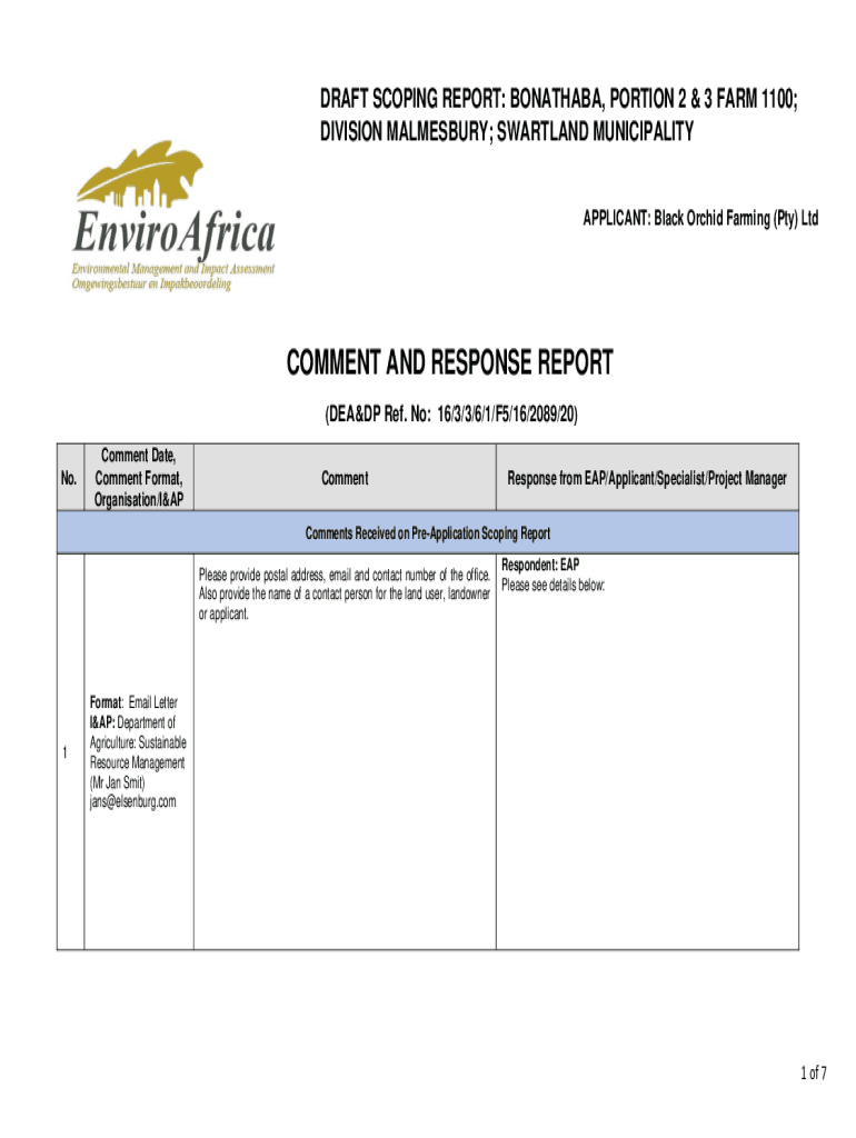COMMENT AND RESPONSE REPORT