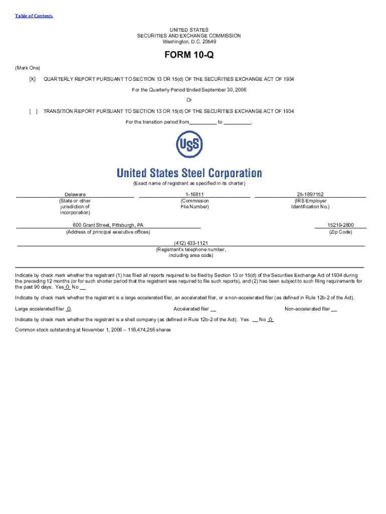 Get the free 10-Q - 11/02/2006 - United States Steel Corporation - US Steel