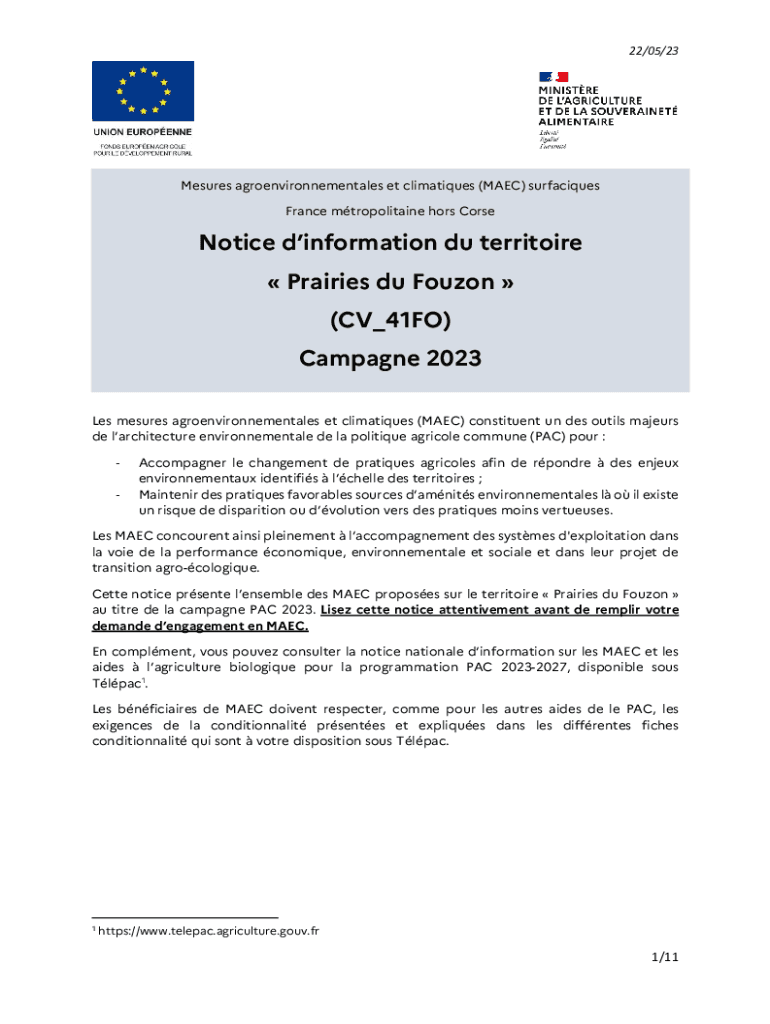 Obtenir le gratuit Notice d'information du territoire Prairies du Fouzon (CV41FO) ...