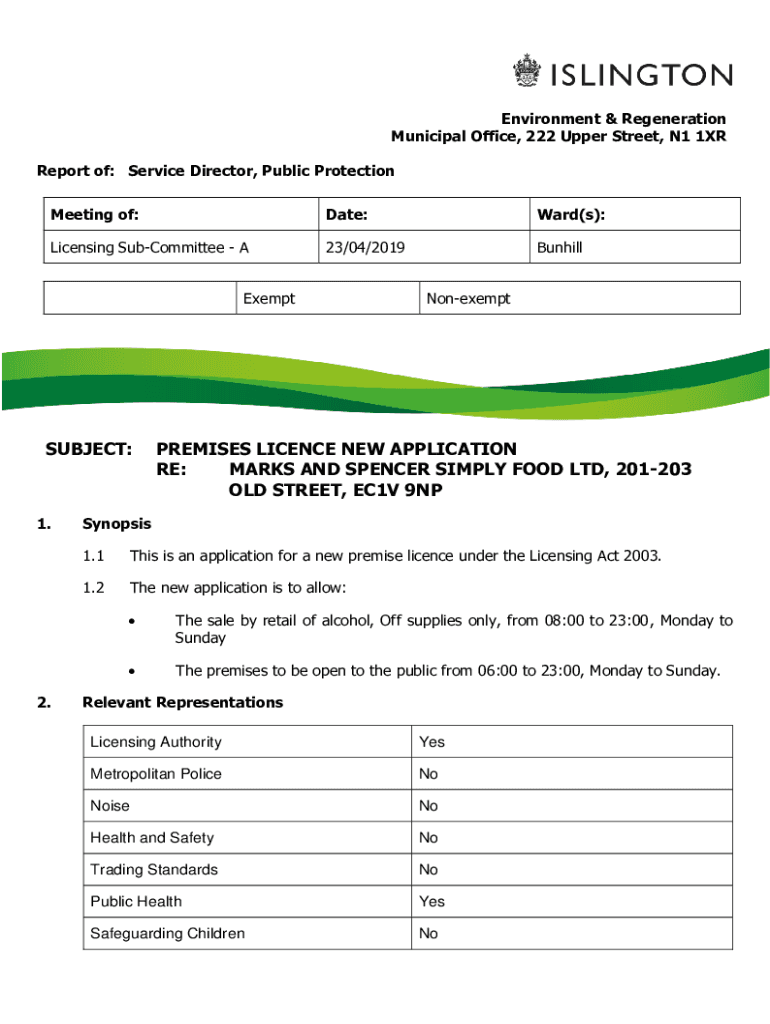 T1S LINGTONEnvironment & Regeneration Municipal Office, 222 Upper Street, N1 1XR Report of: Service Director, Public Protection Meeting of:Date:Ward(s):Licensing Subcommittee A23/04/2019BunhillExemptSUBJECT:1.2.