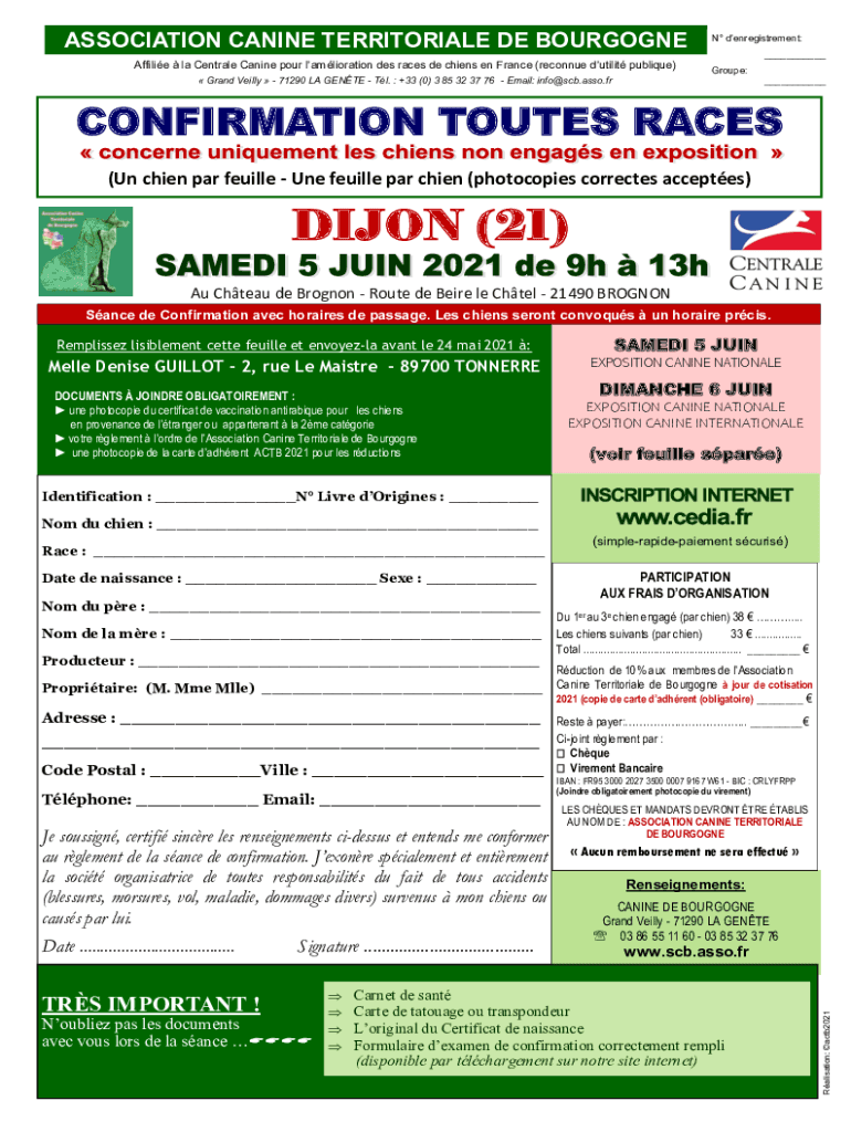 Affiliate la Central Canine pour amelioration DES races DE chains en France (reconquer utility oblique)N denregistrement: